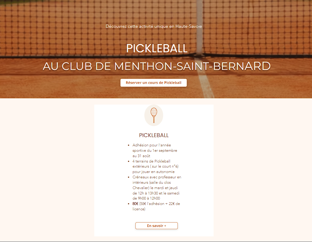 • Mettre en avant l’adhésion et simplifier la réservation des terrains